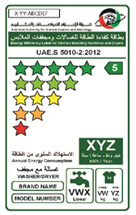 ESMA于2011年4月13日頒布實(shí)施國(guó)家能源效率和保護(hù)計(jì)劃(EESL)。依據(jù)該計(jì)劃,ESMA自2011年開始,先后將空調(diào)、洗衣機(jī)、冰箱納入EESL的管控范圍。所有在管控范圍內(nèi)的產(chǎn)品,都必須通過產(chǎn)品測(cè)試以獲取能效證書,并加貼能效標(biāo)簽(如左圖),方可進(jìn)入阿聯(lián)酋市場(chǎng)。