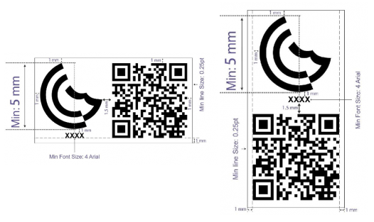 GCTS標識由帶有NB號碼及二維碼的G-mark標識組成。GCTS標識應該輕易可見、可讀,并為永久性標識。使用掃描儀或智能手機的閱讀器應用程序可讀取,且任何放大或縮小均應保持同樣比例。產(chǎn)品、包裝、說明書上的標識尺寸要求如下: