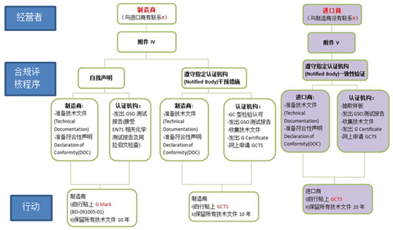 在合規(guī)評定程序中,不同的經(jīng)濟運行體(制造商、進口商)涉及不同流程:
