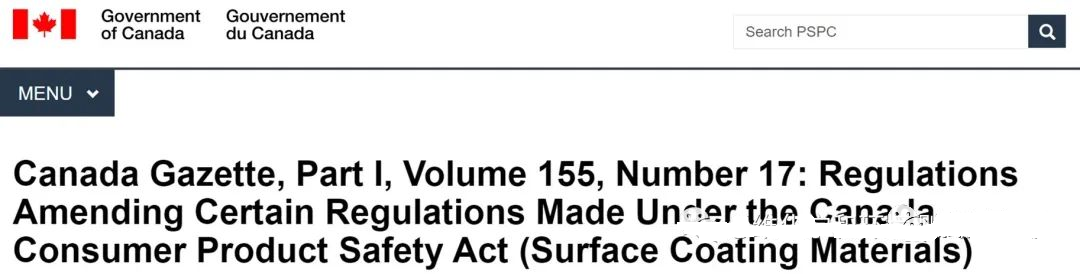 近日,加拿大衛(wèi)生部在官方公報第一部分(Canada Gazette,Part I)發(fā)布加拿大消費品安全法案(CCPSA)管控下的表面涂層材料法規(guī)(Surface Coating Materials Regulations)更新提案,公眾評議期70天,于2021年7月3日結束。