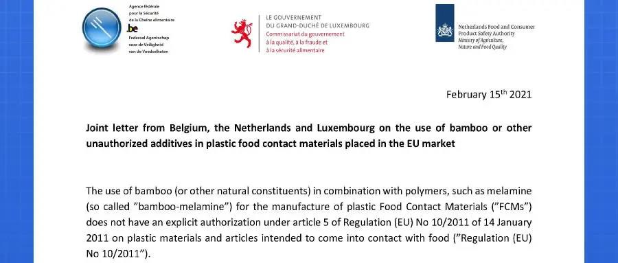 2021年2月15日,比荷盧經(jīng)濟(jì)聯(lián)盟發(fā)布聯(lián)合函,要求從歐盟市場(chǎng)撤出含竹纖維三聚氰胺-甲醛塑料產(chǎn)品。加上此次歐盟采取的強(qiáng)制計(jì)劃,我國(guó)作為世界竹纖維餐具生產(chǎn)和消費(fèi)第一大國(guó),勢(shì)必對(duì)相關(guān)出口企業(yè)產(chǎn)生重大影響,相關(guān)企業(yè)需留意暫停相關(guān)出口歐盟計(jì)劃,以免遭遇退市、召回等風(fēng)險(xiǎn)。若想今后進(jìn)入歐盟市場(chǎng),須待通過(guò)歐盟新品種申報(bào)后,才能合規(guī)使用。