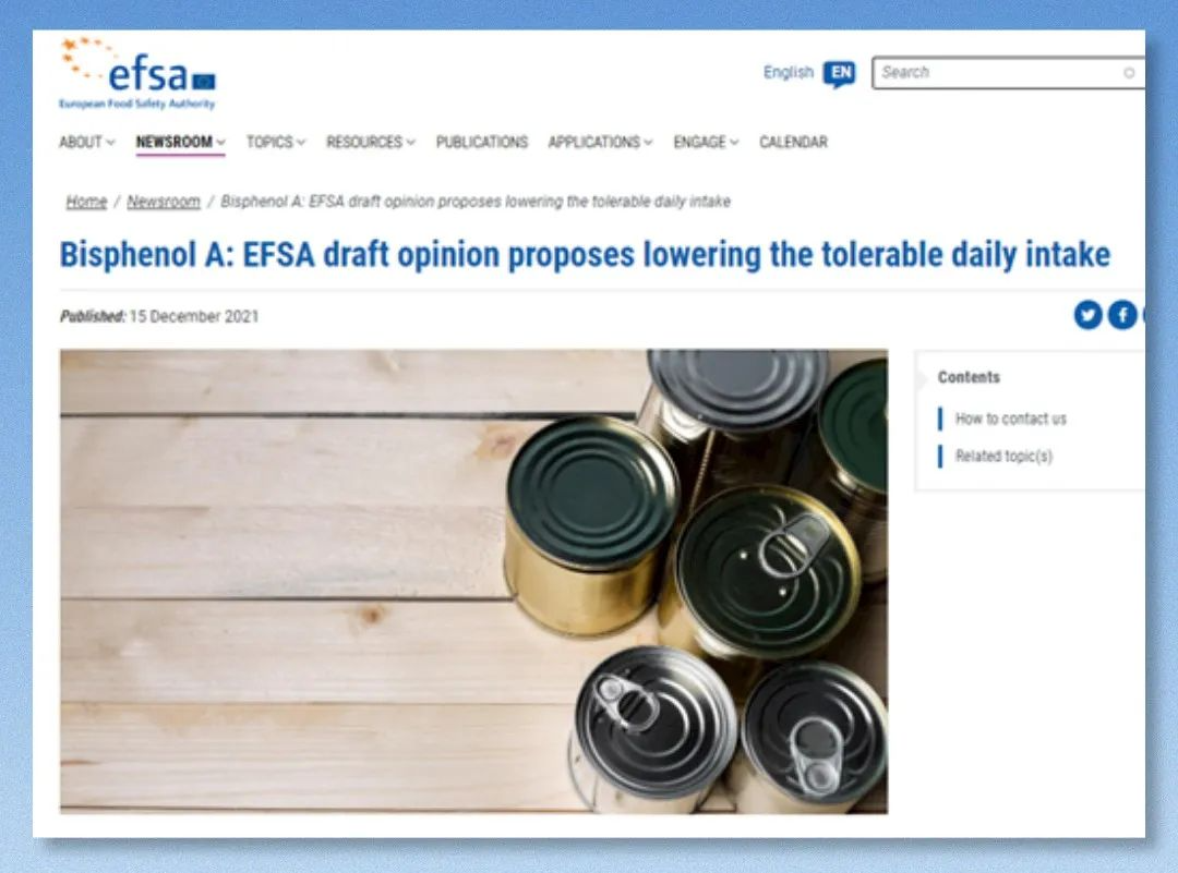 EFSA提出大幅降低BPA每日耐受量(TDI)