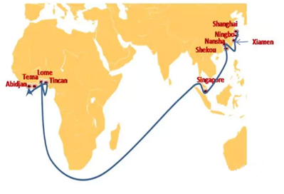 中遠(yuǎn)去往西非途徑尼日利亞的航線:FWAS