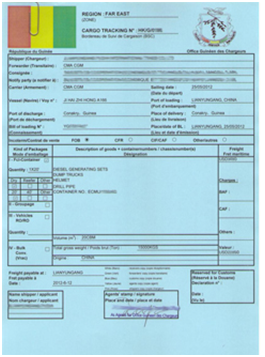 根據(jù)幾內(nèi)亞港務(wù)局要求:針對發(fā)往幾內(nèi)亞的貨物,必須辦理幾內(nèi)亞CTN NO.(貨物跟蹤號碼),否則在起運港船公司無法正常出具海運提單,目的港將無法清關(guān)和提貨。幾內(nèi)亞CTN NO.和尼日利亞CTN NO.類似,CTN NO.是英文Cargo Tracking Note Number的首字母縮寫,意思是貨物跟蹤號碼,又稱為貨物進(jìn)口清單。